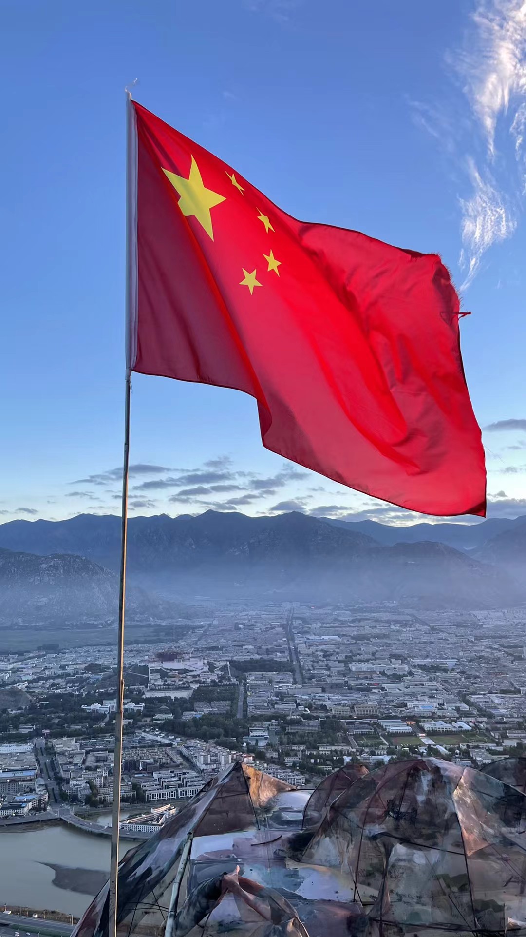 第二届“红色文化摄影节”二等奖《高原之上,红旗飘扬》